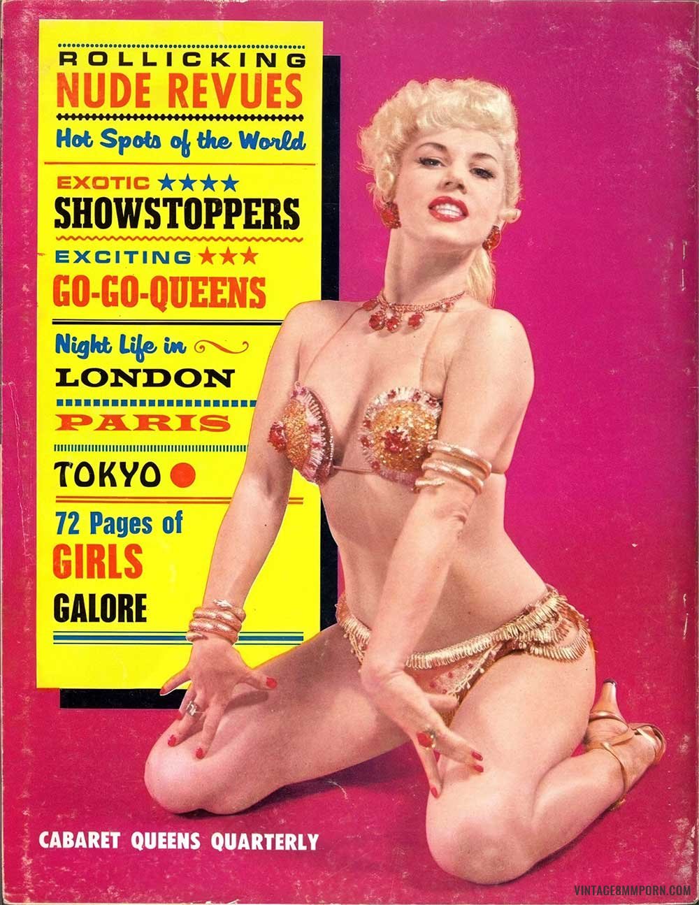 ROLLICKING NUDE REVUES! Hot Spots of the World! EXOTIC SHOWSTOPPERS ★★ EXCITING GO-GO-QUEENS! Night Life in LONDON, PARIS, TOKYO! CABARET Queens QUARTERLY, WINTER 1966! DEC. 1966! Incomplete.