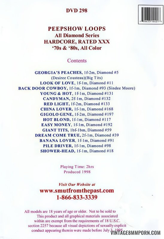 PEEPSHOW LOOPS DVD 298, All Diamond Series! HARDCORE, RATED XXX '70s & '80s, All Color!